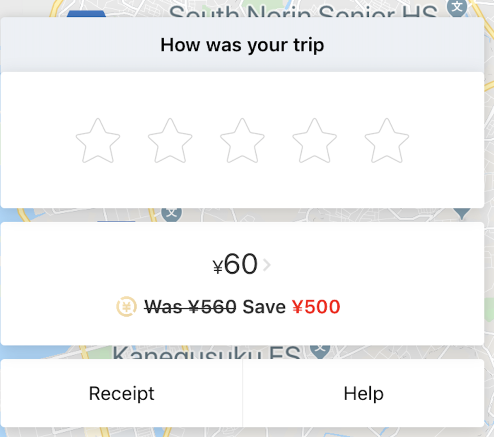 총 요금 560엔 -> 500엔 할인돼서 60엔만 결제되었네요.