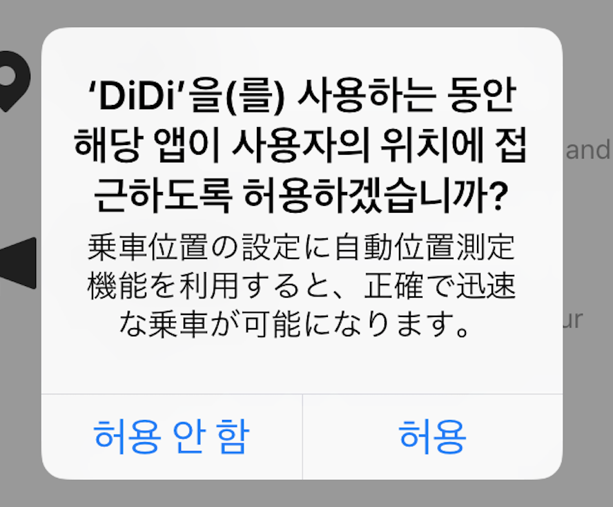 위치 정보를 제공하긴 싫지만 택시가 저에게 오려면 필요하기 때문에 허용을 눌려 줍니다.