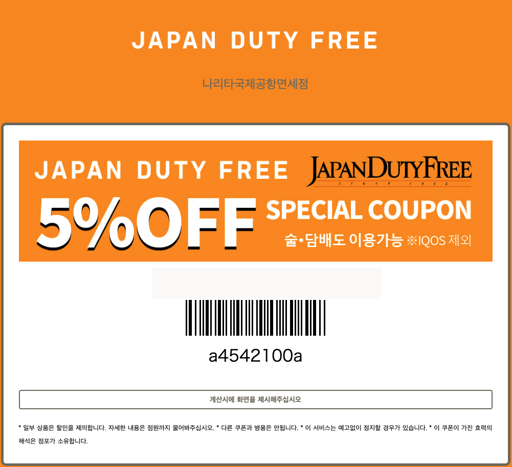 5 % 할인 쿠폰-나리타 공항Japan Duty Free