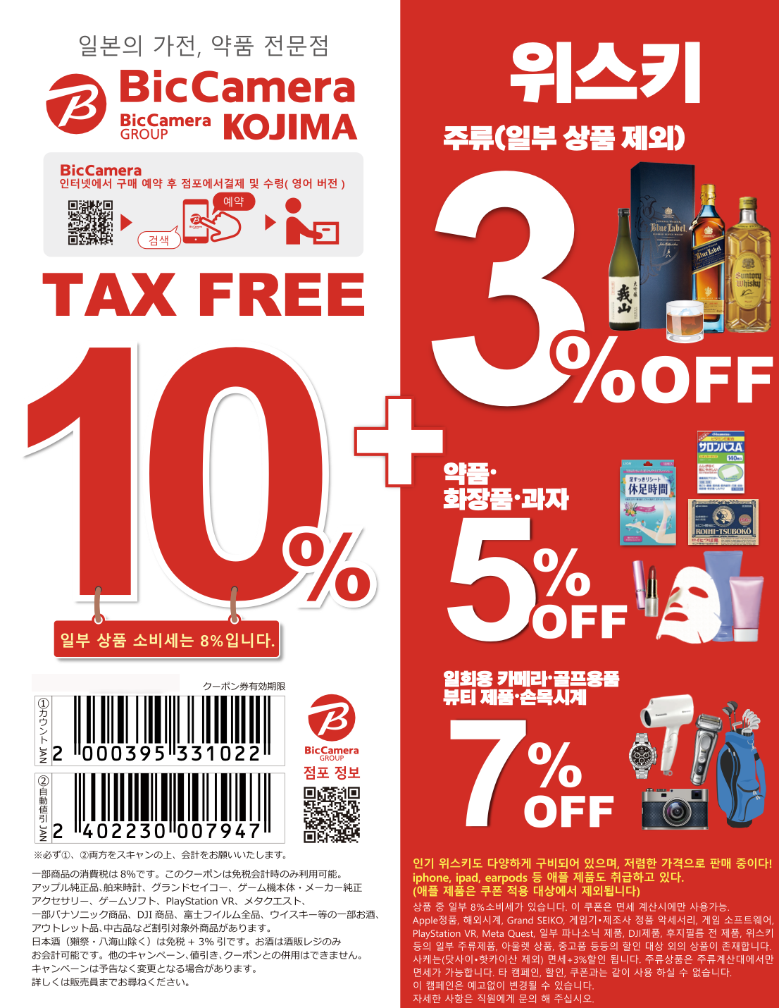 일본 술 등 : 면세 10% + 5%할인 = 13%