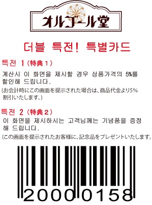오르골의 전당에서 쿠폰을 제시합니다. 5000엔(세금 별도) 이상 구입하시면 10%의 면세 혜택도 받을 수 있습니다.