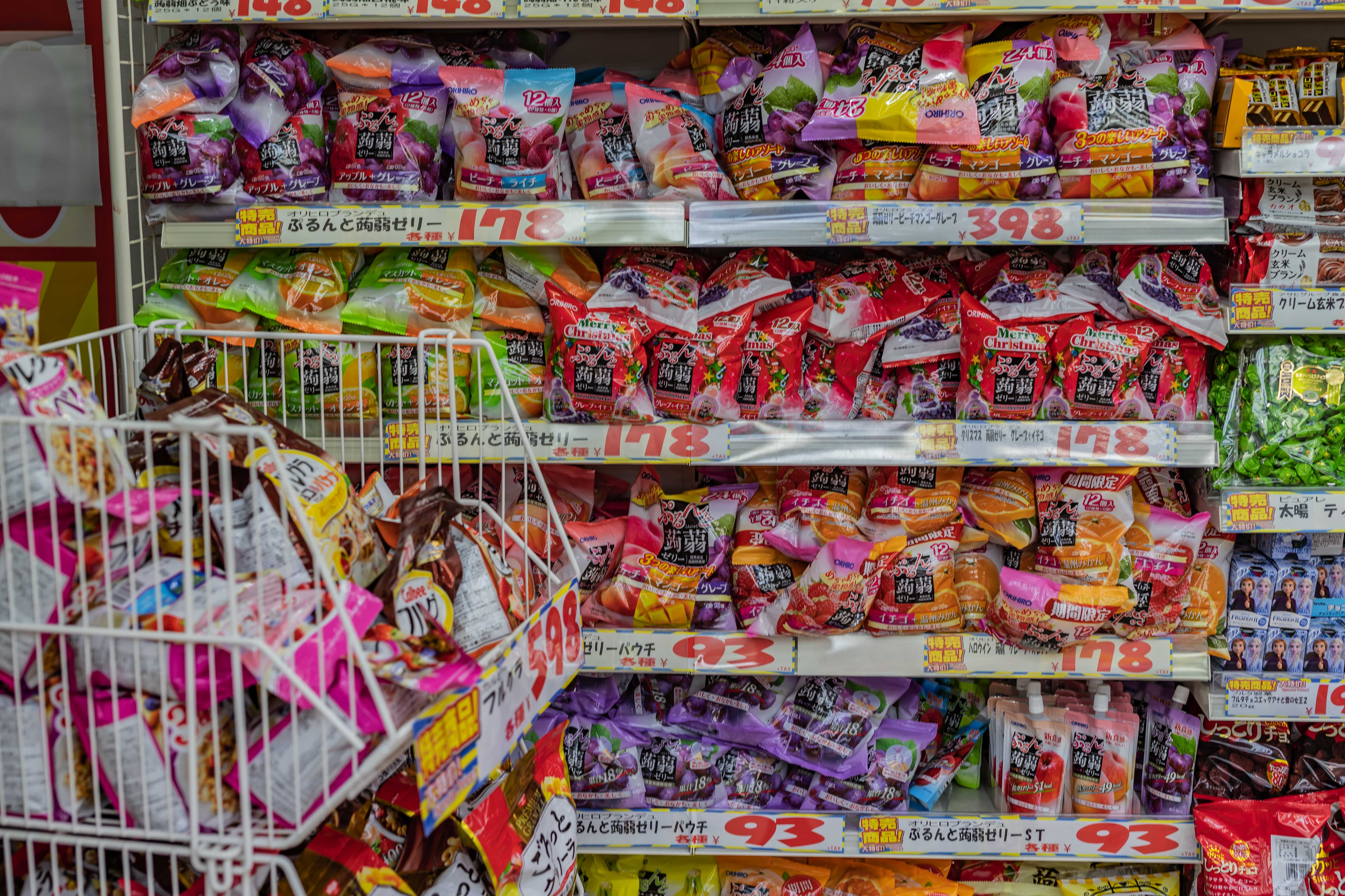 일본 오면 꼭 사가는 곤약 젤리. 다이어트에 그렇게 좋단다. 맛도 여러 가지가 있어 종류별로 사가면 질리지 않고 마음껏 먹을 수 있다. 가격도 너무나 저렴한 것.