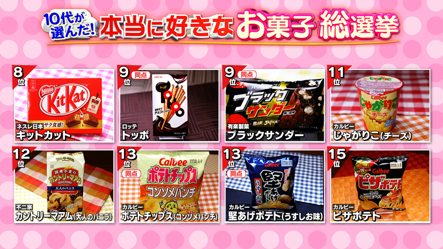 일본에선 매년 지상파에서 과자 인기 총선거를 합니다.