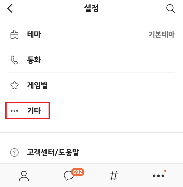 3. 조금 밑으로 내리면 기타가 보이는데 터치.
